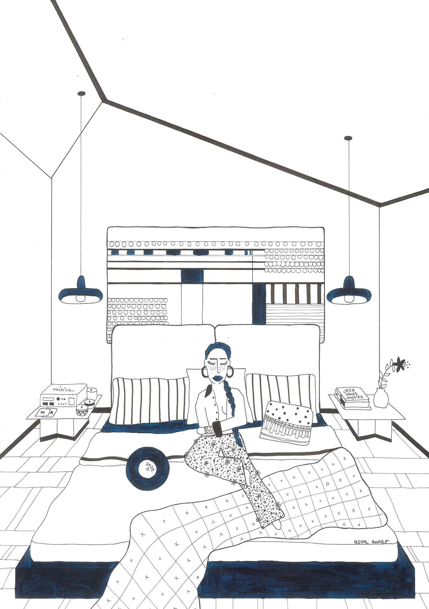 Sade at an apartment in London. Illustration for Femme Creators Edition at Mercado de diseño, Madrid