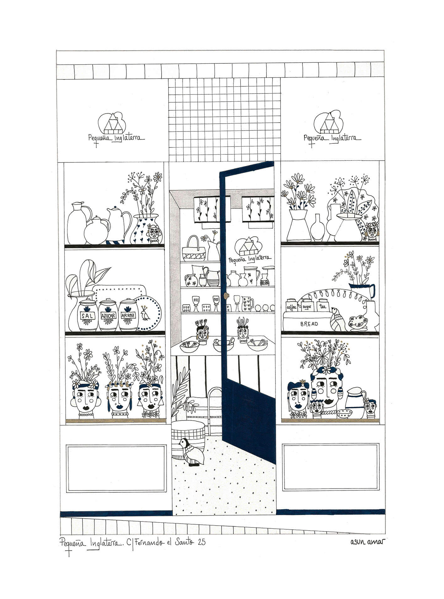 Encargo particular para ilustrar la fachada de la tienda «Pequeña Inglaterra», Madrid 2019.